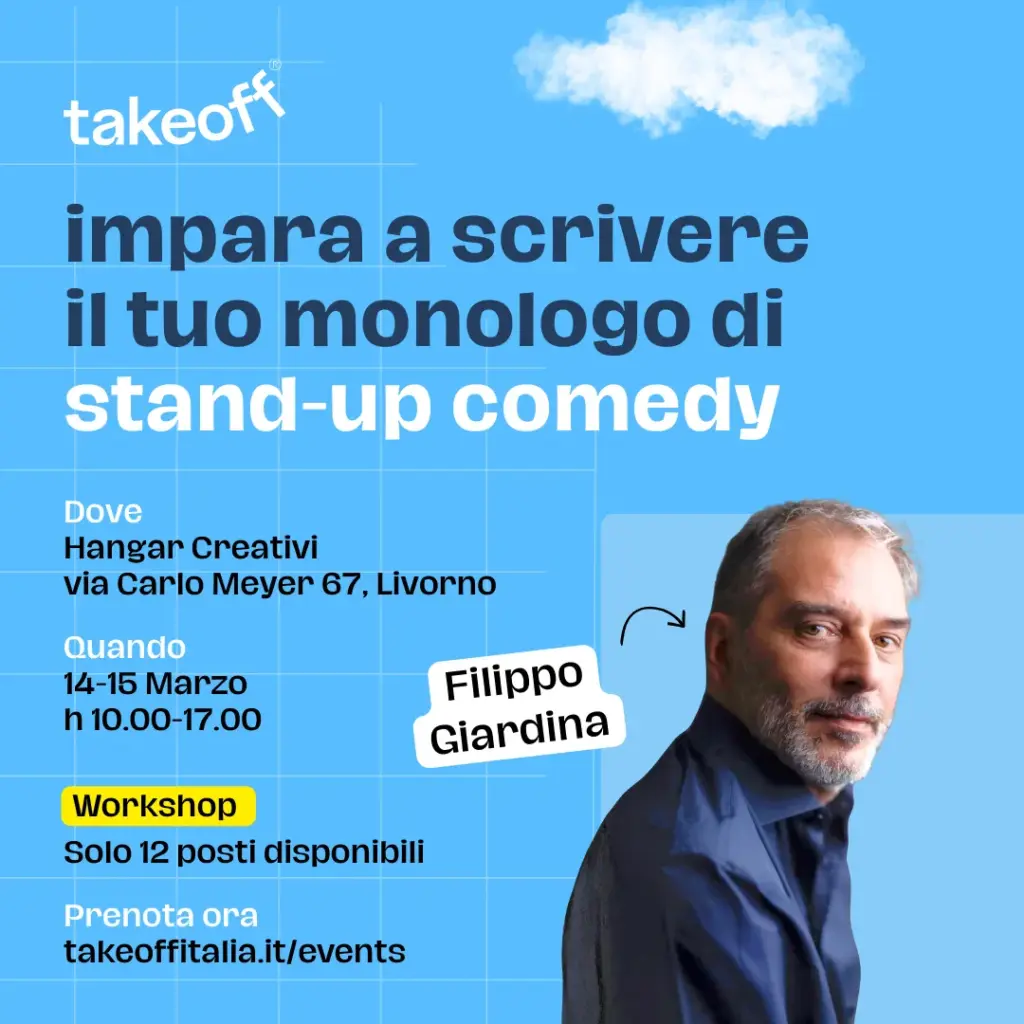 Impara a scrivere il tuo monologo di stand up comedy con Filippo Giardina, esplora l’urgenza satirica e il punto di vista personale come motore della comicità.